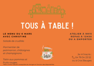 📞 04 79 34 23 52 ou en caisse à Croc’Bauges